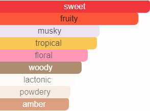 • Middle notes: Coconut Water, Vanilla Orchid, Ambrette